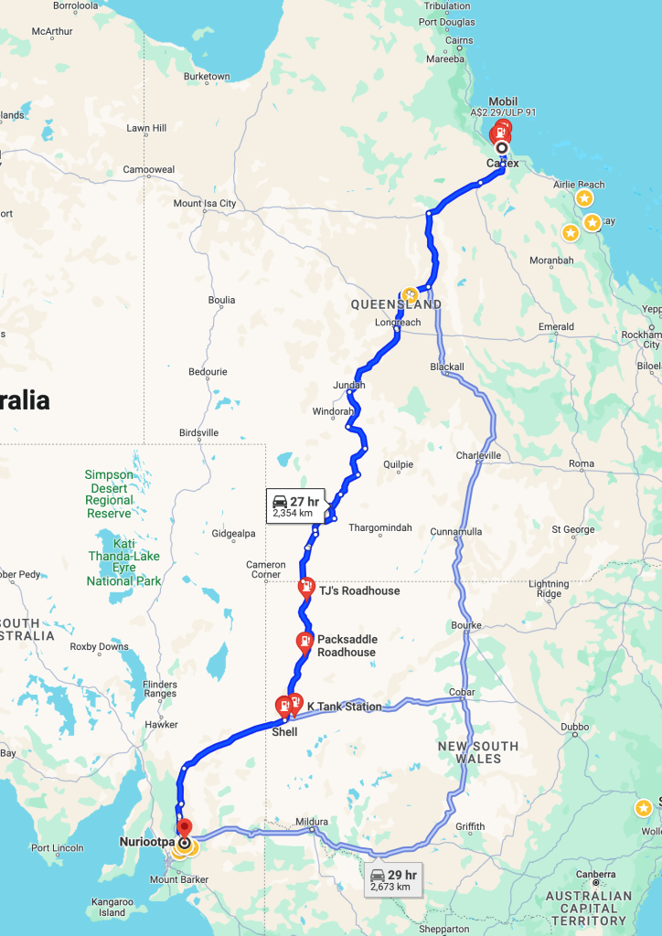 Sometimes, Google took us onto dangerous roadways, such as Route 19 in Queensland, that are suitable only for 4-wheel drive vehicles. That leads us to the next topic.