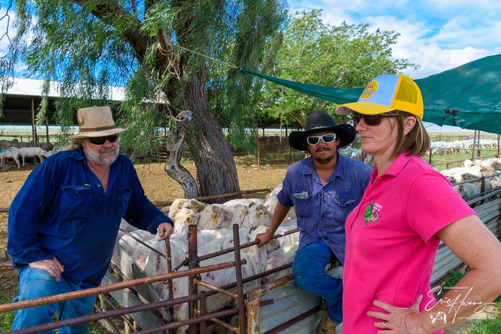 Shearing was already in progress, amid blaring 70’s music, and we were just in time to watch the shearers in action. Fiona introduced us to Bill, the ranch owner, and his son, Ron, who were outside the shearing barn spraying the shorn sheep with de-licer. Lice on a sheep can cause them to lose all their wool. Fiona explained what was happening and what each person’s role was in the shearing process. She knows this because she did it once too. So did her husband, Winky (Peter), which is how they met. Fiona was also a true-life jillaroo, the female version of a jackaroo, or Australian cowgirl, so she’s quite familiar with life on a ranch.