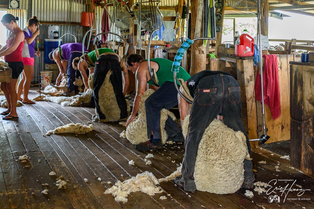 Shearers use a shear connected to a large suspended motor with a flexible cable. A good shearer can shear a sheep in under one minute. In competitions, the best shearers can do it in 40 seconds. When they’re finished with a sheep, it’s sent down a slide into a separate pen for each shearer. They keep count of how many sheep they finish and the number in the pen confirms it. What we noticed was that good shearers can do their job fast without nicking or hurting the sheep as much as an inexperienced shearer. Grub was one of the better shearers as his sheep looked less bloody than most of the others. The shearers get AU$2.90 per head and in a typical day can easily shear up to 200 head of sheep or nearly AU$600 worth. That’s about AU$150,000 annually. Of course, that’s assuming they can work all year, which they could only do if they travel…a lot.