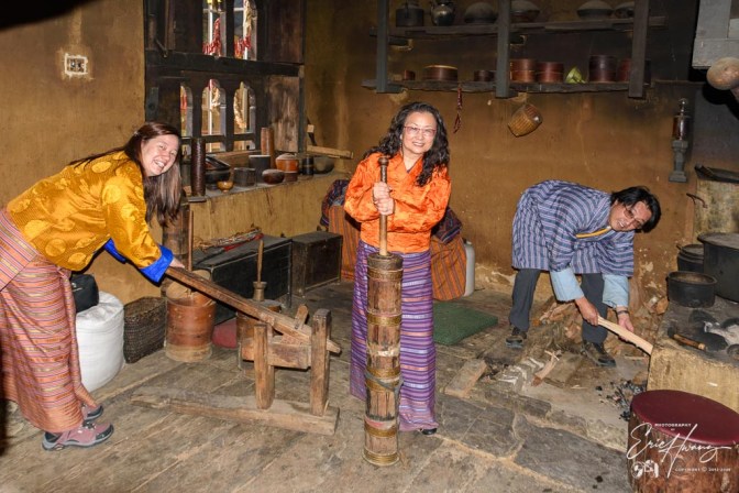 Our meals during our stay were simple, healthy dishes mainly consisting of vegetables, rice and one small meat dish. Meat is not a large part of the Bhutanese diet. Red rice and buckwheat are staples of their diet. Most of the dairy was in the form of cheese. We didn’t get to try Ema datshi, which could be considered a national dish made with cheese and very spicy chilies, since it was probably too spicy for our palates.