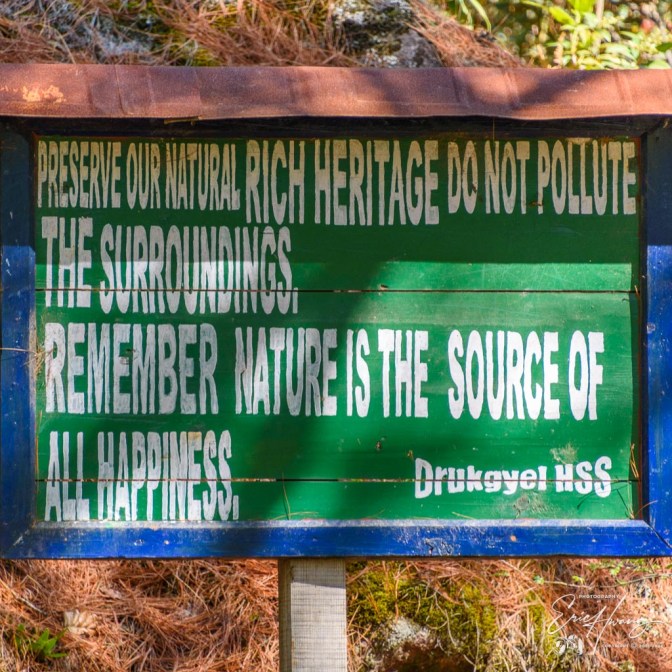 Bhutan has a rich and active cultural heritage, something that brings a strong sense of belonging to its people and contributes to the happiness of its citizens. Its GNH also depends upon sustainable development, cultural preservation, strong community bonds, environmental conservation, spiritual well-being, and good governance. These beliefs are echoed throughout the country in road signs and cultural markers, but more importantly, in the faces and actions of the people we met.