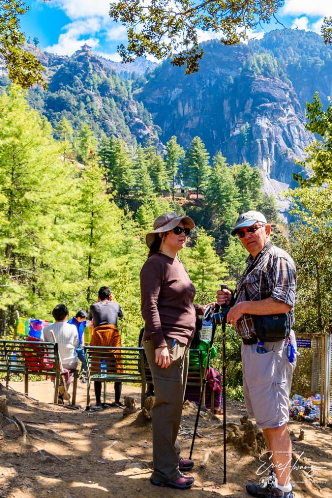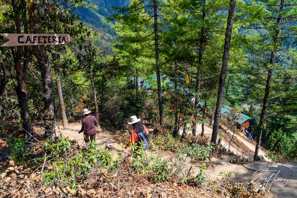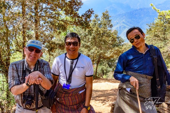 The entire hike, including rest stops and a visit and blessing at the monastery, took just over 6 hours. Nearly 4 hours to go up, and just over 2 hours to come down. Our hike began around 9 a.m. with partly cloudy skies and cool temperatures thanks to the altitude. Throughout our hike, we were surrounded by conifer forests and rhododendrons in bloom, making for a lovely trek up and down the mountain. Our guides stayed with us the entire time, with Tashi leading and our driver taking up the rear. The path was well marked and mostly in good condition. The journey to see the Tiger’s Nest was a great ending to our short visit to Bhutan.